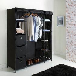Dulap XXL pentru haine din material textil si schelet metalic, 12 rafturi (11 + 1 spatiu pentru umerase haine), culoare Neagra