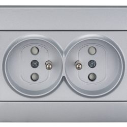 Priza dubla 16A cu pin PE, conexiune cu şurub, argintiu
