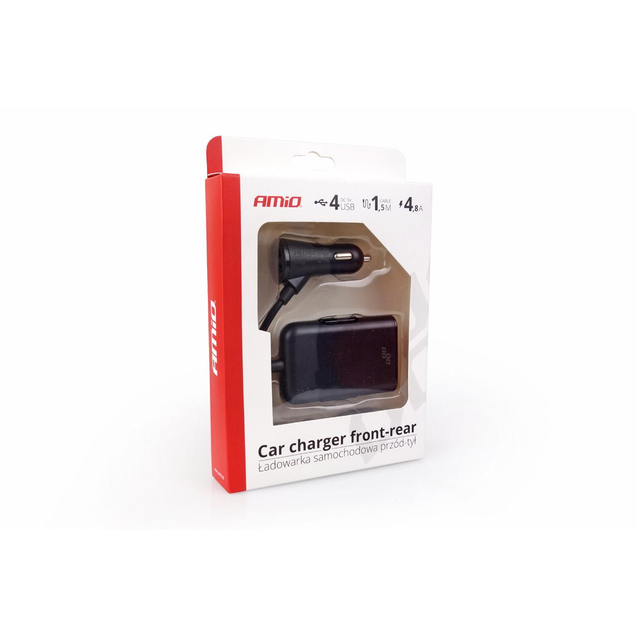 Incarcatorul auto este echipat cu 2 porturi USB pentru sofer si pasager si inca doua porturi USB HUB pentru pasagerii din spate. Cablul de 1.5 m lungime faciliteaza accesul pasagerilor din spate la sursa de curent in timpul lungilor calatorii cu autoturismul.