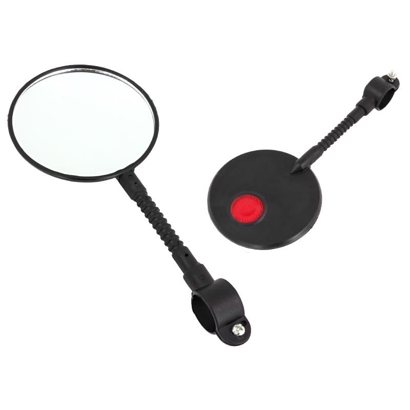 Oglindă universală pentru bicicletă – necesară în timpul ciclismului. Echipat cu un mâner lung pentru montare pe volanul unui două roți și un reflector suplimentar pe spate. Asigurați siguranța dvs. și a altor utilizatori ai drumului.