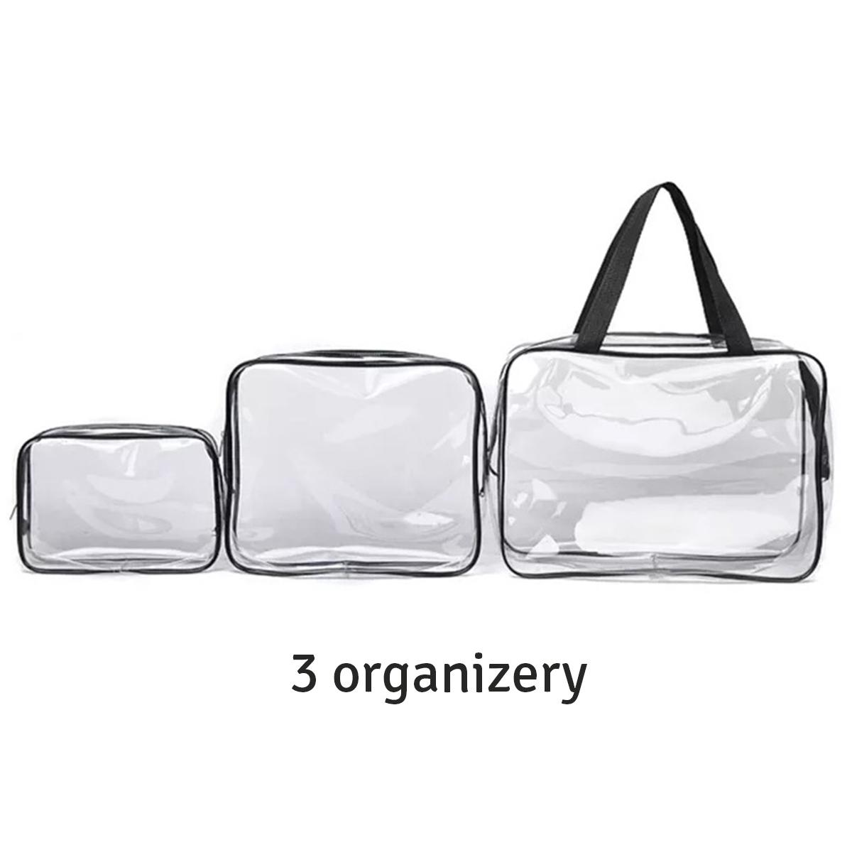 Set 3 organizatoare de cosmetice, transparente, ideale pentru calatorii