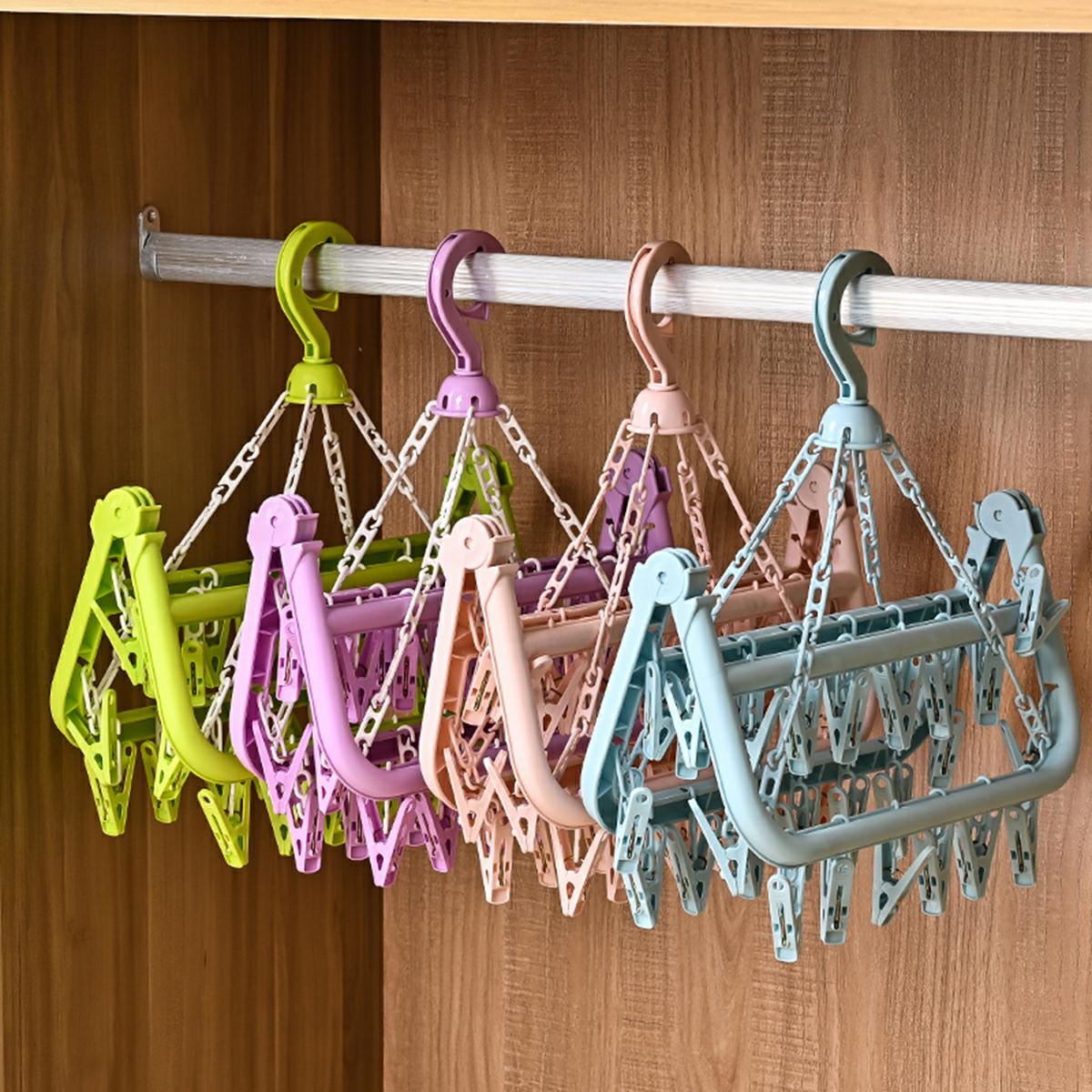 Uscator compact cu 32 de agrafe pentru lenjerie si sosete