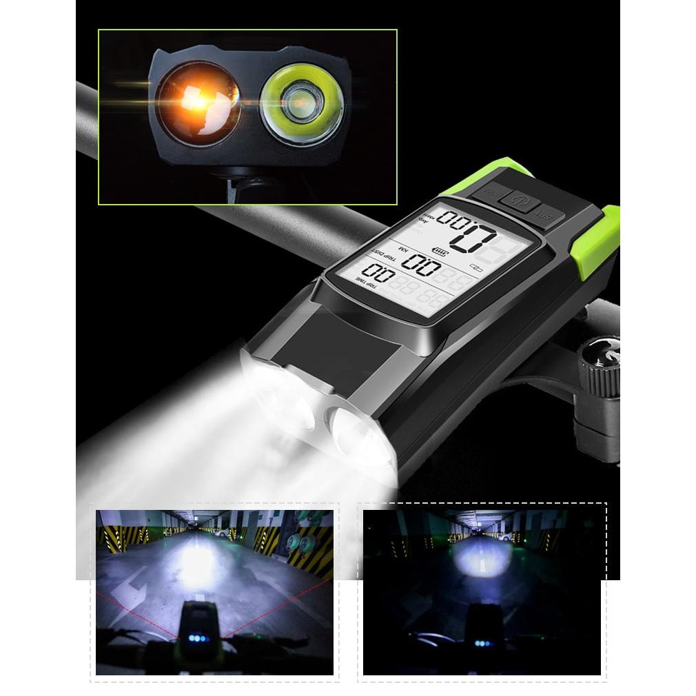 Vitezometru Digital cu lampa Fata + Spate si Claxon, waterproof, pentru bicicleta