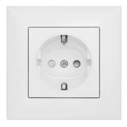 Priza cu PE, cu prot copii, alb, complet, conex elastica